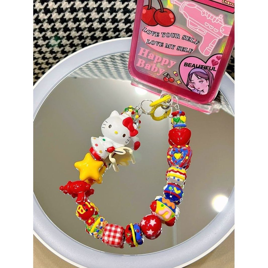 ハローキティ手作中古ペンダント日本地域限定ビーズストラップキーホルダーキーホルダー
