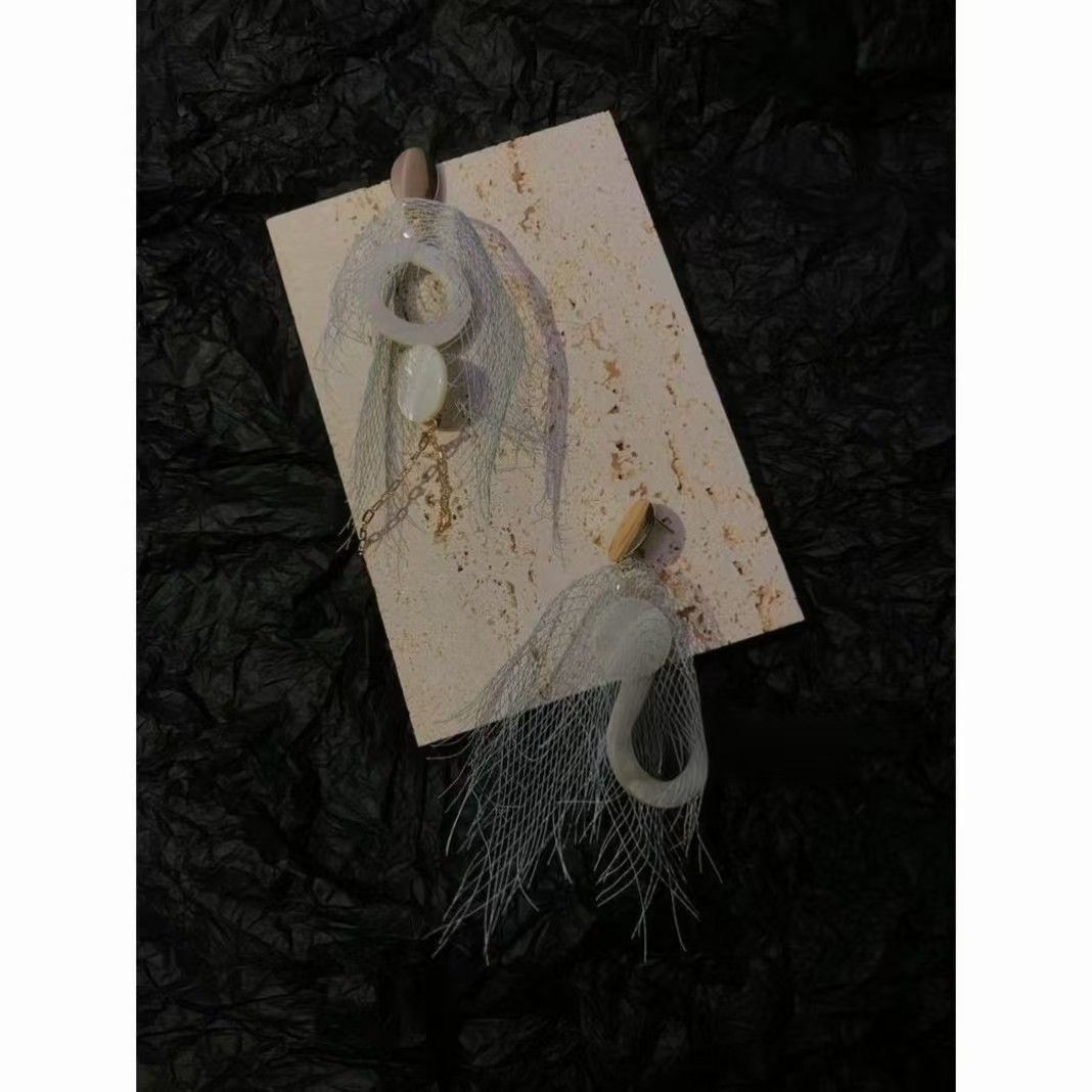 高級感気質港風イヤリングオリジナルデザイン感羽状レトロ葉陶磁器大ピアス