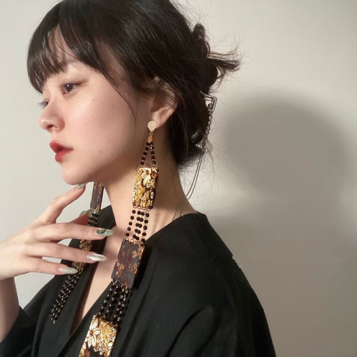 シルクのビーズのカーテンのチェーンのフリンジの復古風の漢服の暗黒の新しい中国式のイヤリング