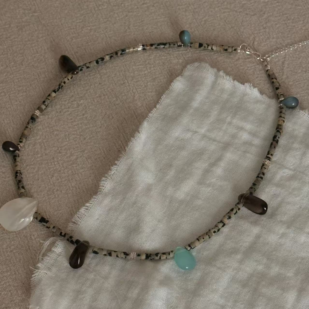 RORY「烏白」オリジナル小衆デザイン手作りビーズ8925純銀天然石鎖骨ネックレス女