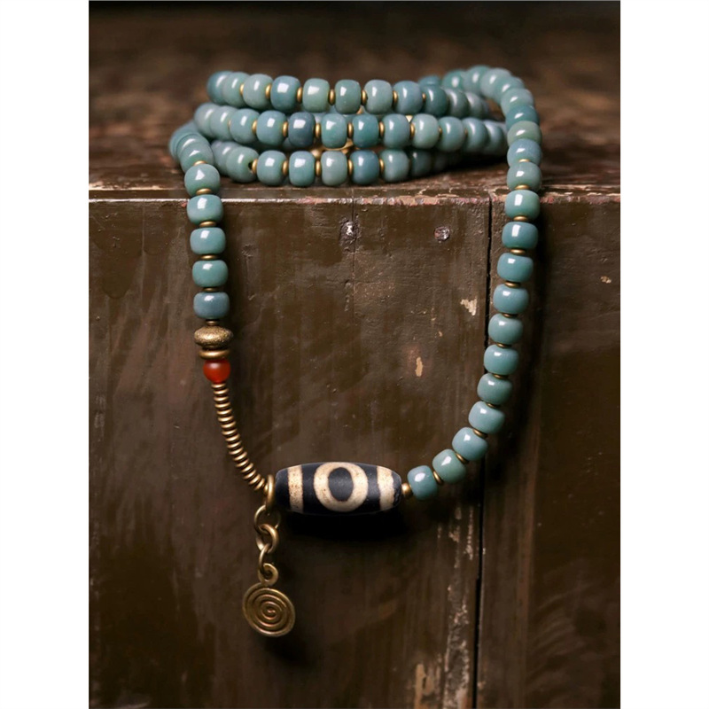 RORYレトロ菩提根天珠ネックレス女性個性文芸民族風百合珠長型セーターチェーン