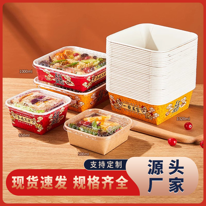 使い捨て弁当箱クラフト紙の出前弁当箱正方形は環境保護弁当箱サラダ箱の平底包装箱を厚くする
