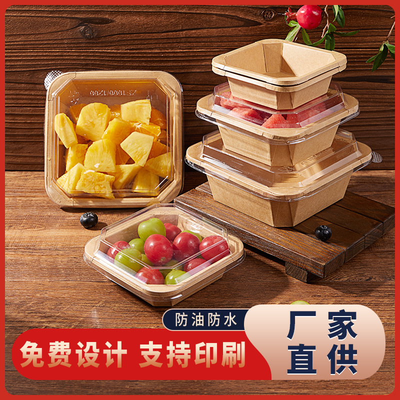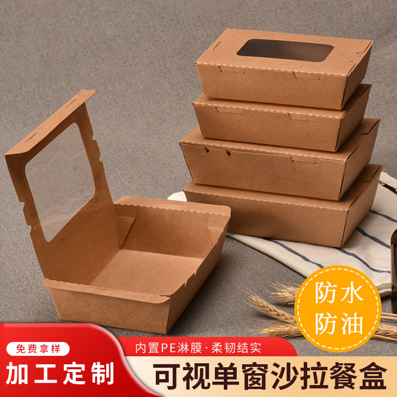 卸売り紙弁当箱アメリカ風フルーツサラダ洋食チャーハン外食弁当箱使い捨て窓付き牛皮紙箱