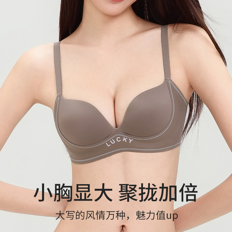 汕頭シームレスブラジャー、固定カップ、大きな胸を小さく見せる下着、副胸を縮小、リムなし、大きいサイズの薄いブラジャー、ファッショナブルなコントラストカラー