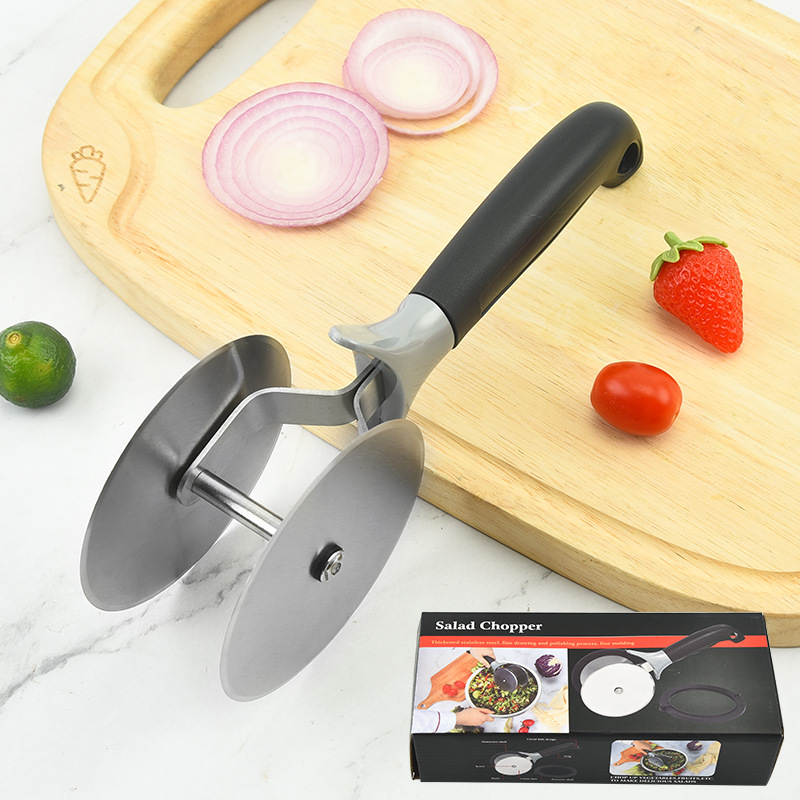 新しいタイプのステンレス製の2輪のパンケーキナイフのアイデア家庭用プラスチック製の柄のピザカッターの台所のベーキングツール