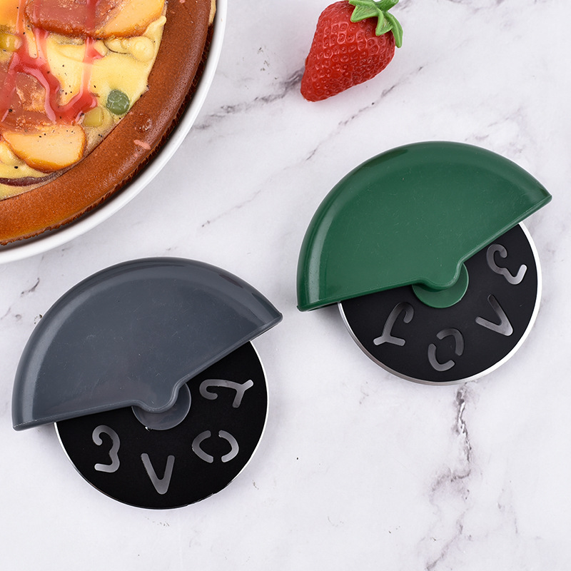 メーカーのピザナイフのステンレスの円形のピザナイフのローラーの中の餅の刀の蓋のピザの輪の刀のピザの切りの卸売り