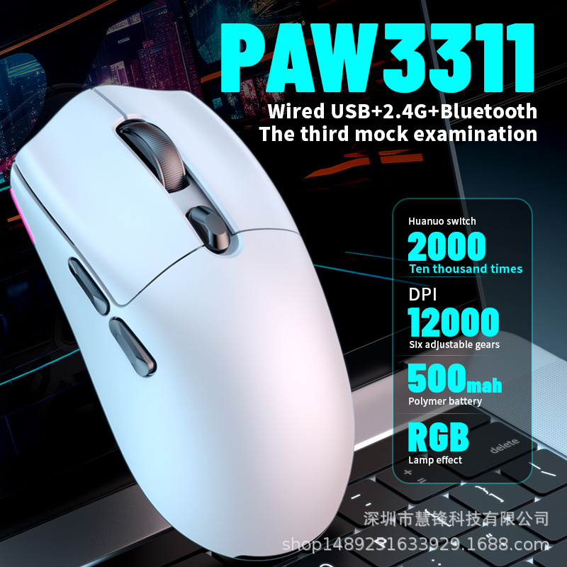 12000dpi有線2.4G bluetooth軽量化3モードゲームマウスRGBプログラマブルマウスPAW3311