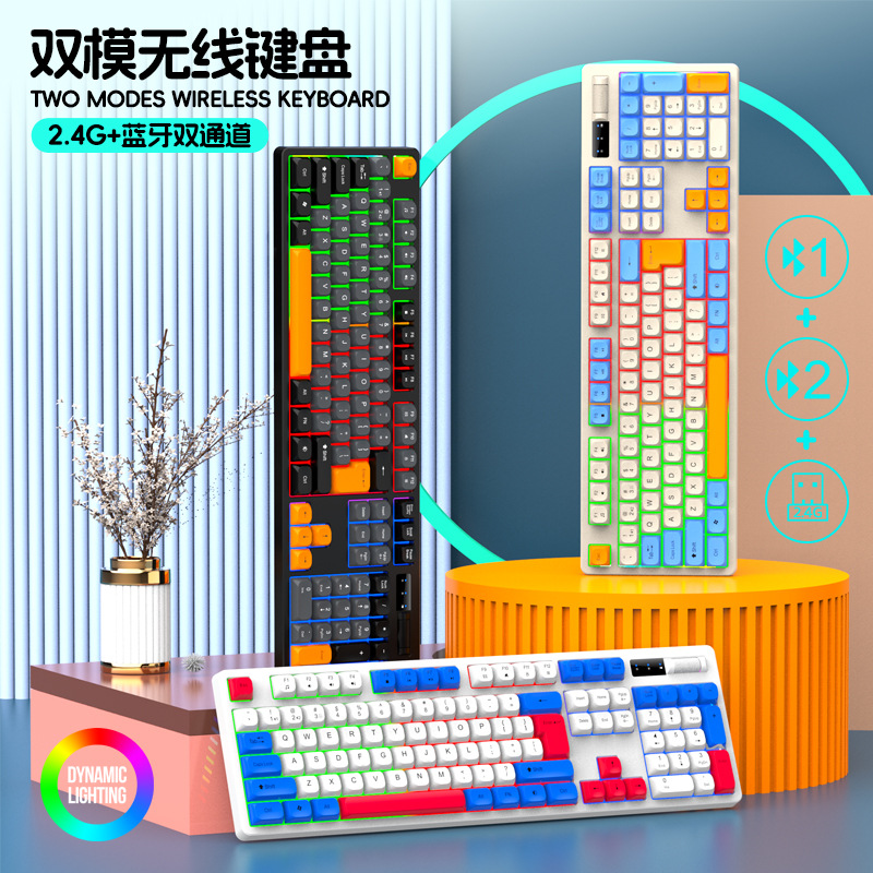 新しい104キー機械手触りRGB発光フィルムキーボード2.4G/bluetoothデュアルモード充電ゲームキーボード