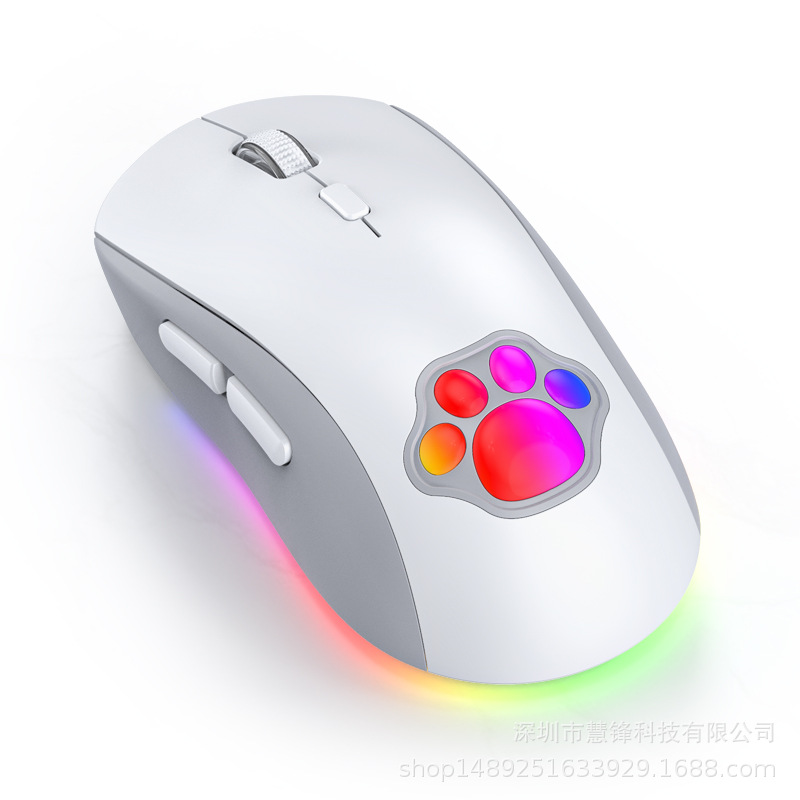 アニメ猫爪二重モードbluetooth充電無線マウス2400dpi七彩発光2.4g静音女子マウス