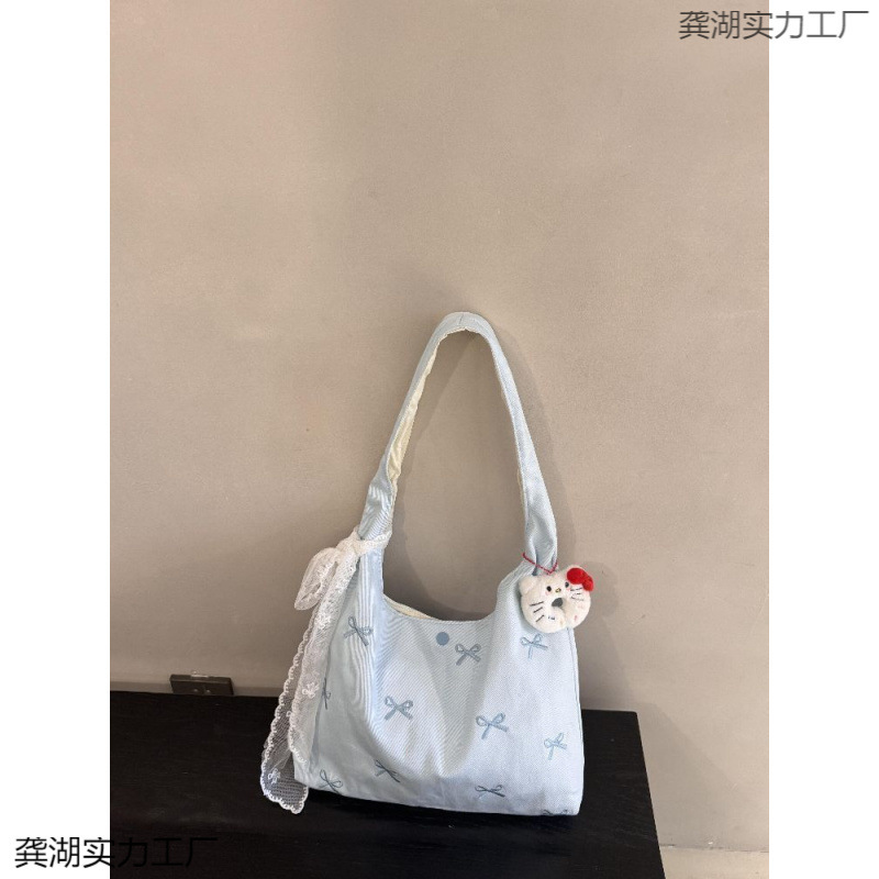 韓国風リボン刺繍キャンバスバッグレディース新作通勤大容量ショルダートートバッグ