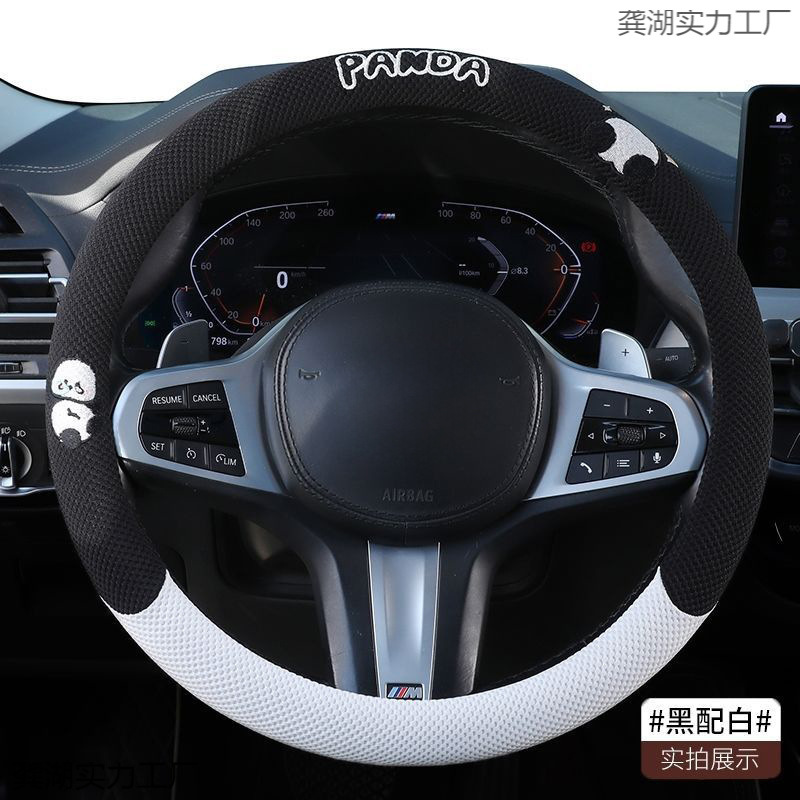 夏のアイスシルクステアリングホイールカバー滑り止め吸汗性メッシュハンドルバーカバーオールシーズンかわいいパンダハンドルバーカバー卸売
