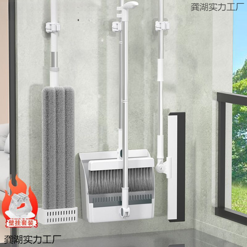 家庭用折りたたみほうきとちりとり、コットンモップ、3点セット、家庭用手洗い可能な吸水スポンジ、フラットクリーニングモップ