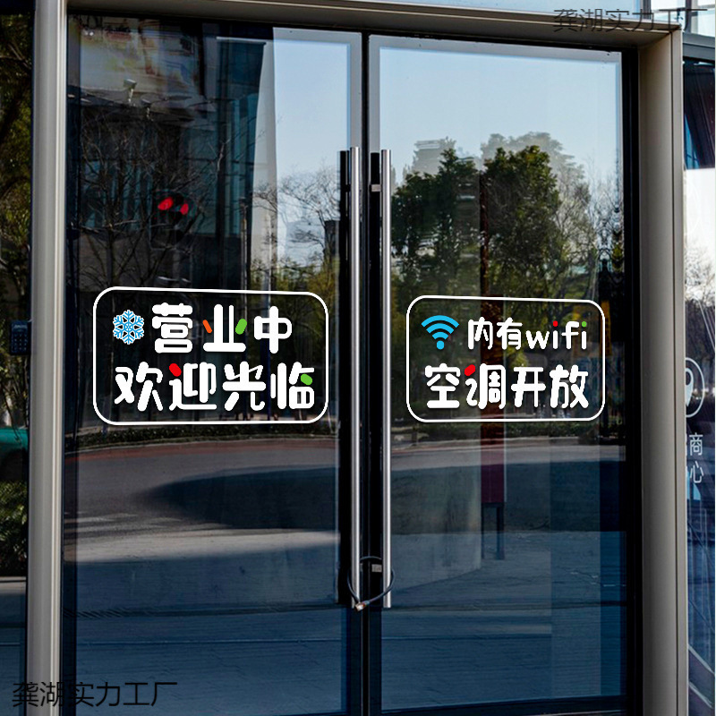 営業中へようこそ ガラスドアステッカー ホテルヤード 衣料品 ミルクティー フラワーショップ エアコンオープンステッカー