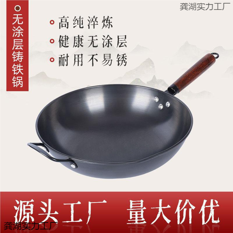 耐削り性古い鉄鍋昔ながらの家庭用中華鍋ガス窒素処理ノンスティック鍋ユニバーサルコーティングされていない中華鍋卸売