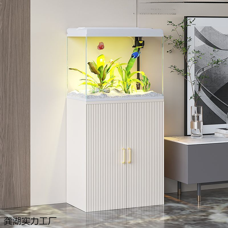水槽リビングルーム家庭用中小型金魚水槽床置き縦型新型水槽フィルター酸素発生器一体型キャビネット付き