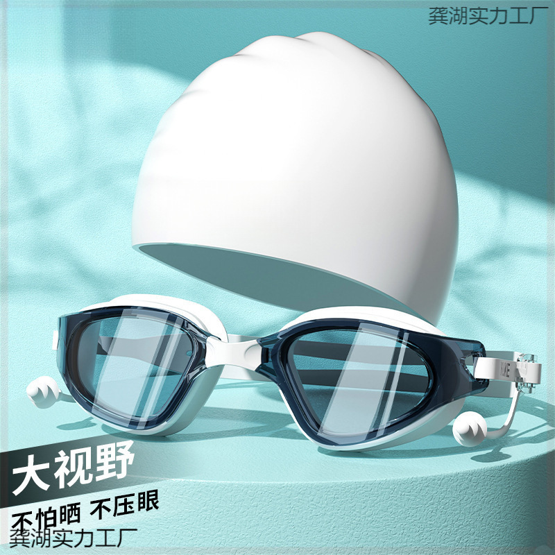 水泳ゴーグル大人の夏高精細防水防曇男性と女性のフラット近視水泳ゴーグル水泳キャップセット水泳用品卸売
