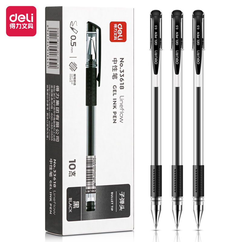 得力0.5mmサイン中性ペンビジネスペン文房具学生用弾丸黒水性ペン事務用品