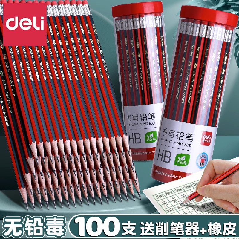 有力文房具木鉛筆児童2b hb鉛筆絵画スケッチペン小学生用品30本50本バケツ入り