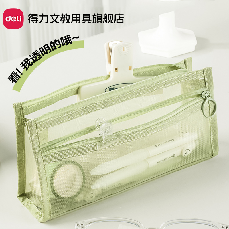 有力筆袋透明三角網糸大容量高颜値INS風シンプル二重学生試験ファスナー文