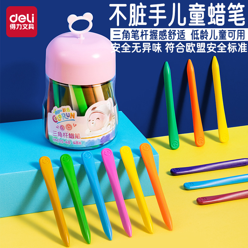 得力三角杆蜡笔不脏手无毒儿童油画棒宝宝蜡笔幼儿园小学生不沾手