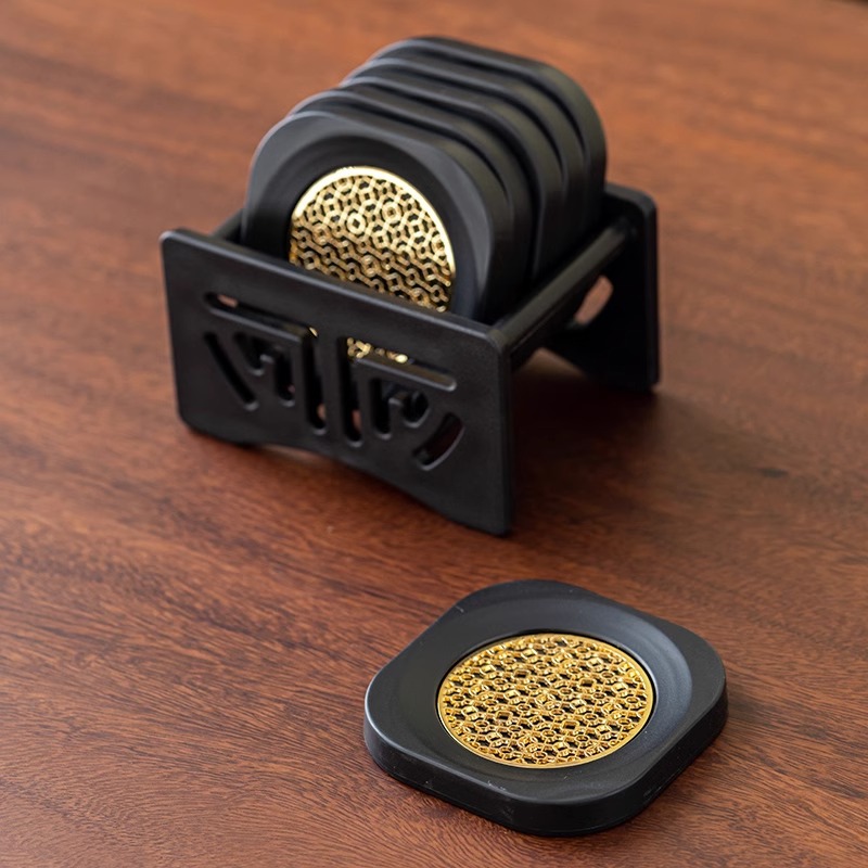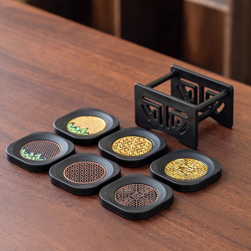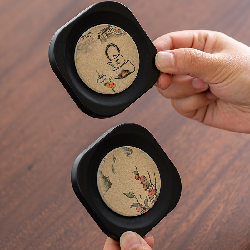 中国式吸水茶カップマット家庭用オフィス断熱パーマ防止茶托レトロ角型工夫茶器茶道部品