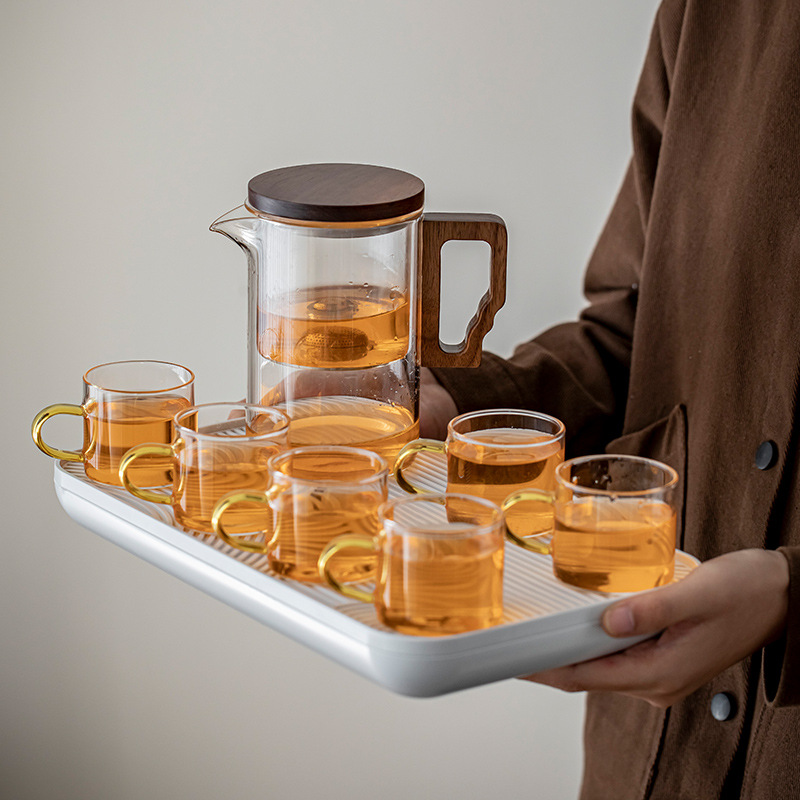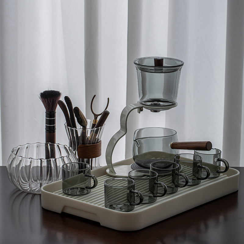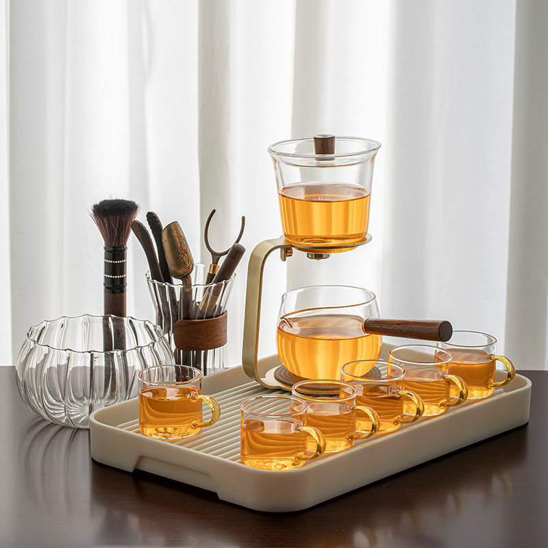新しいティーポット茶水分離カップ全ガラス内胆回転ろ過茶器セット磁気吸引カップ