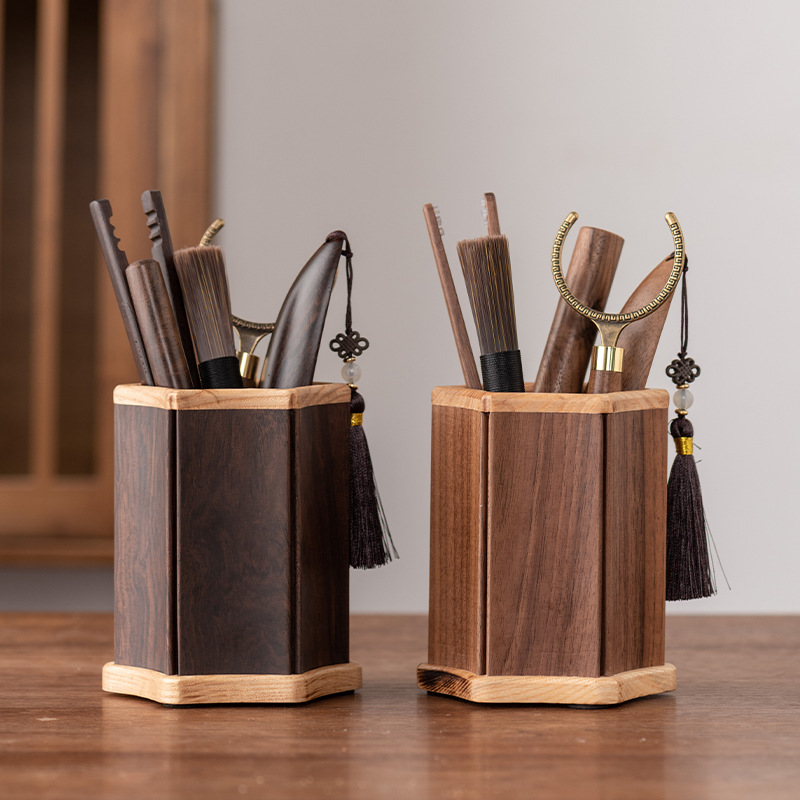 胡桃木茶道六君子家庭用中国式高級コースター茶さじ茶挟み茶器用品部品茶卓置物