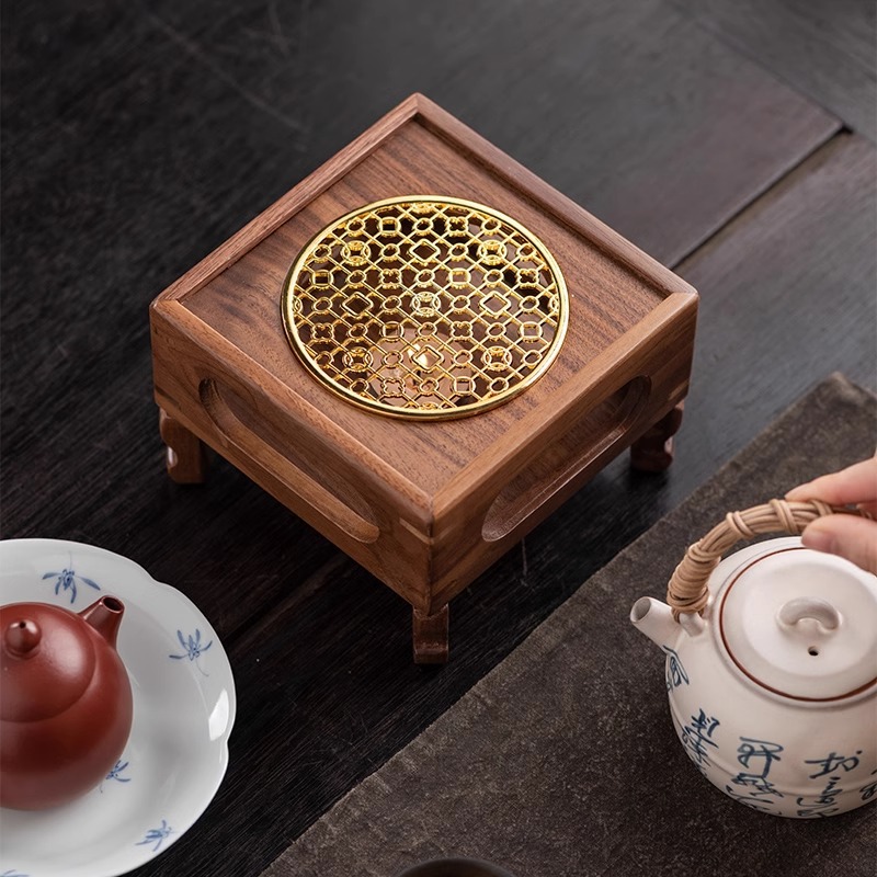 北アメリカの胡桃木の暖かいお茶のストーブの小さいストーブのろうそくは温かい茶器のホテルを温めてお茶のストーブを煮て焼きます。