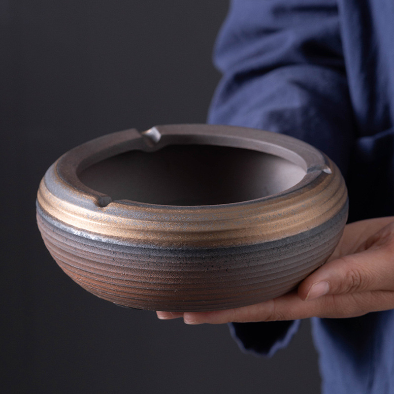 創意粗陶金灰皿レトロ手作り中国式陶磁器灰皿家庭用リビングオフィス大サイズ