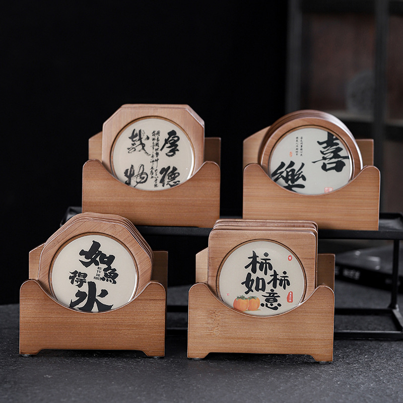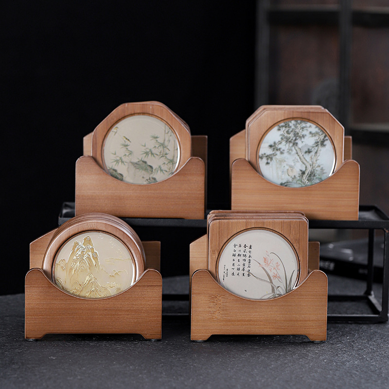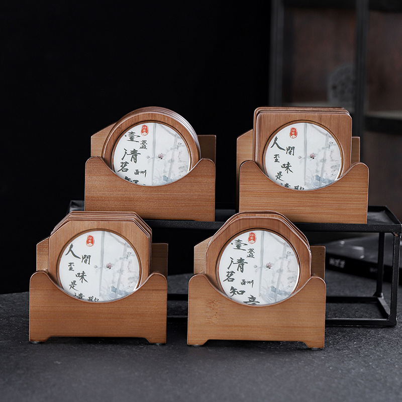 創意竹製コースターセット茶道隔熱クッションオフィスの工夫茶器部品滑り止めパーマ防止ソーサー