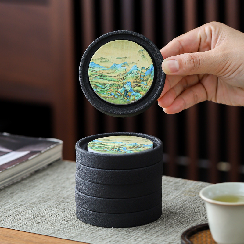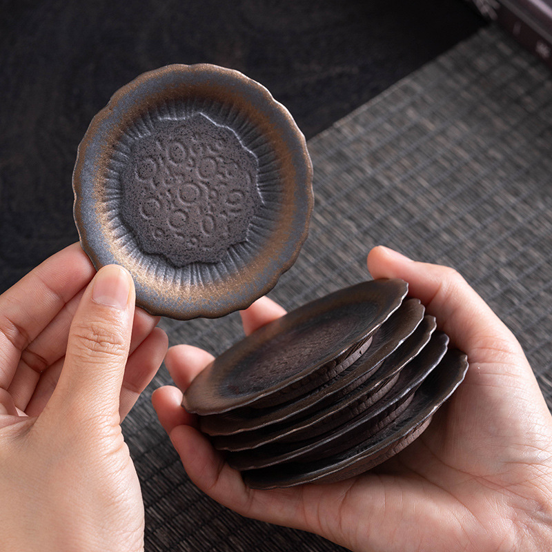 陶磁器の茶のコースターのレトロな純度の金の粗い陶器のコースターの日本式の家庭用の工夫の茶器の部品はお茶の杯を熱くすることを防ぎます。