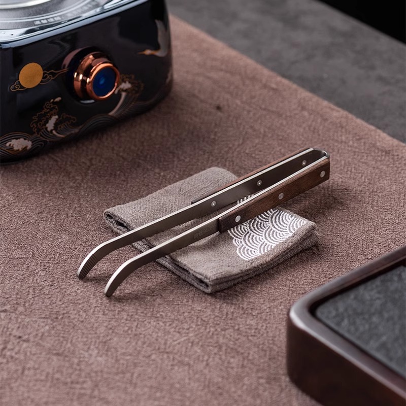 クリエイティブハイエンド純チタン茶クリップ家庭用黒檀木工夫茶器部品茶カップクリップピンセットカップクリップ器