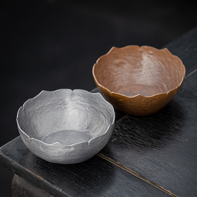 創意的な手のハンマーの紋様は水を建てて古風な古銅の杯を作って金属のお茶のかすのかめのお茶を洗ってお盆の茶道の茶器の部品を洗います。