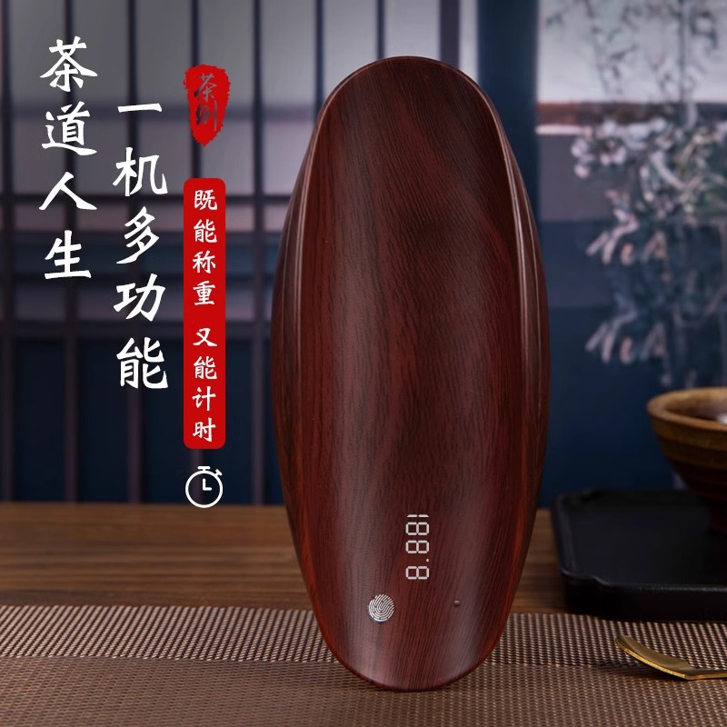 レトロなお茶は電子秤の茶でプーアル茶のお茶を量ってグラム数の電子量のお茶の重さを量って茶器を量っています。