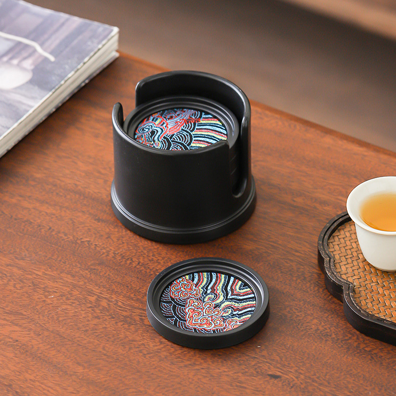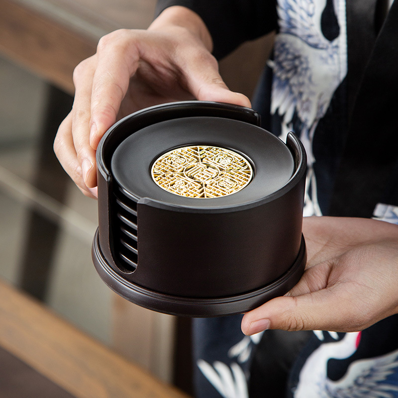 中国式吸水コースター収納カップホルダー家庭用創意工夫茶道部品断熱マットセット