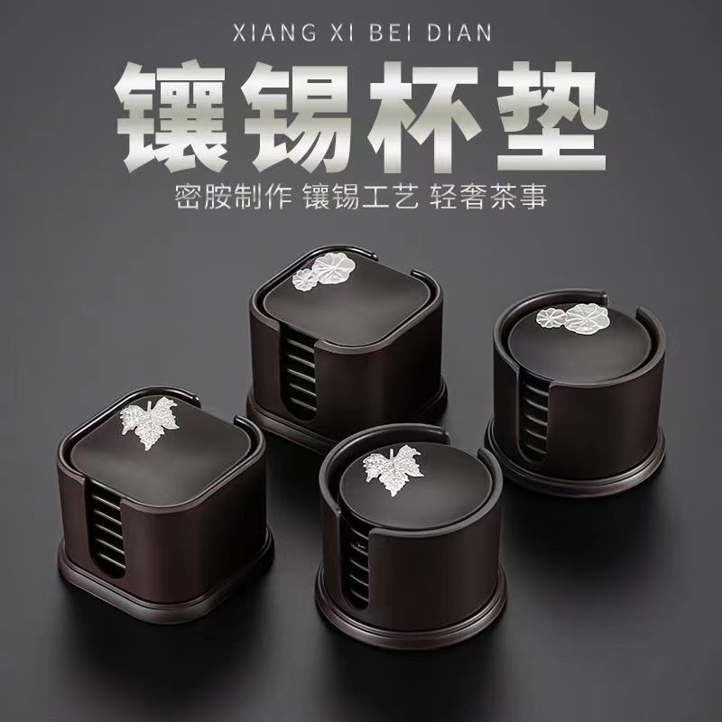 中国式模造古銅小カップマット合金断熱茶カップホルダー家庭用工夫茶器茶道部品収納棚付き