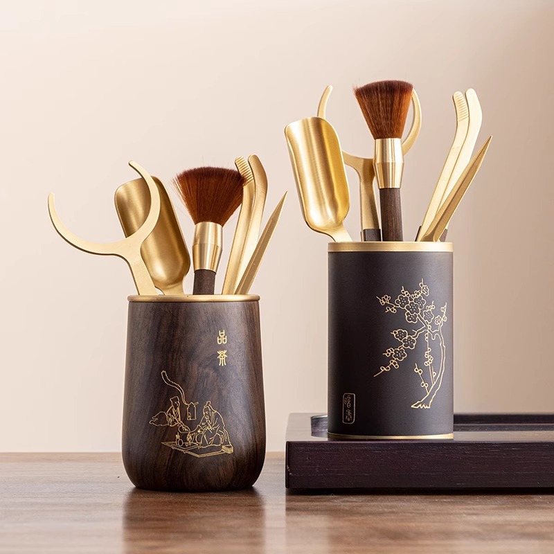 創意茶道六君子カップパッドセット黒檀木純銅部品セット工夫茶道具茶刀茶挟み大全