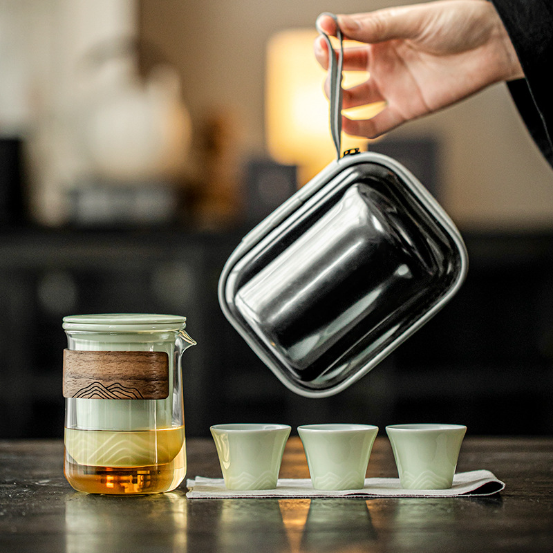 青山ガラス快客杯屋外携帯陶磁器一本三杯携帯旅行工夫茶器セットシンプル