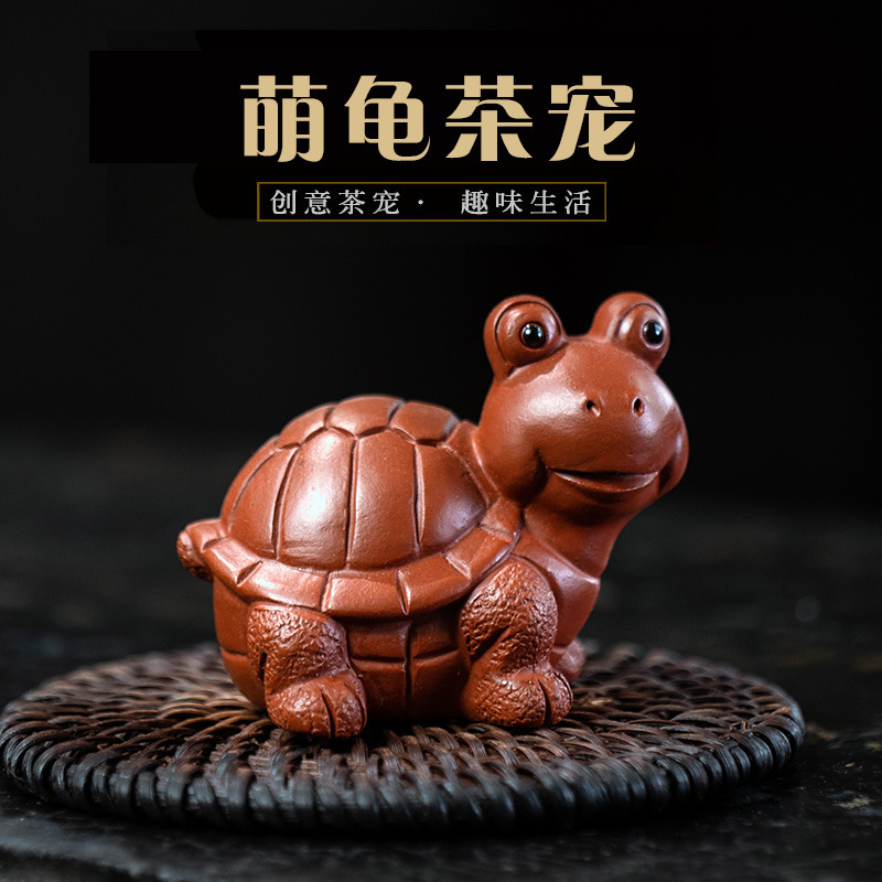 卸売り宜興紫砂茶は大きな目の亀朱泥小萌亀の創意彫刻茶をかわいがってかわいい工芸品を飾っています。