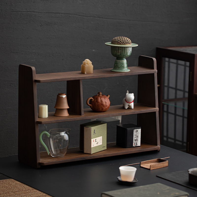胡桃木茶具棚物置棚実木茶杯棚家庭用デスクトップ小型ティーポット博古棚収納棚