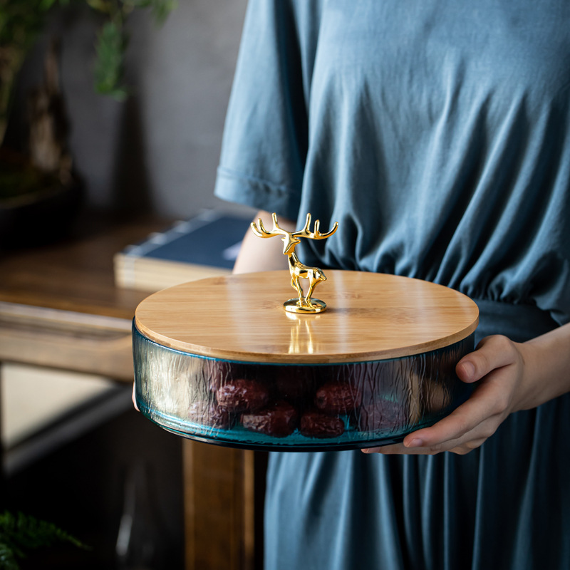 大岸堂果物果物皿小食皿ネット赤果物皿瓜子金属ヘラジカガラスキャンディー防湿蓋付き皿