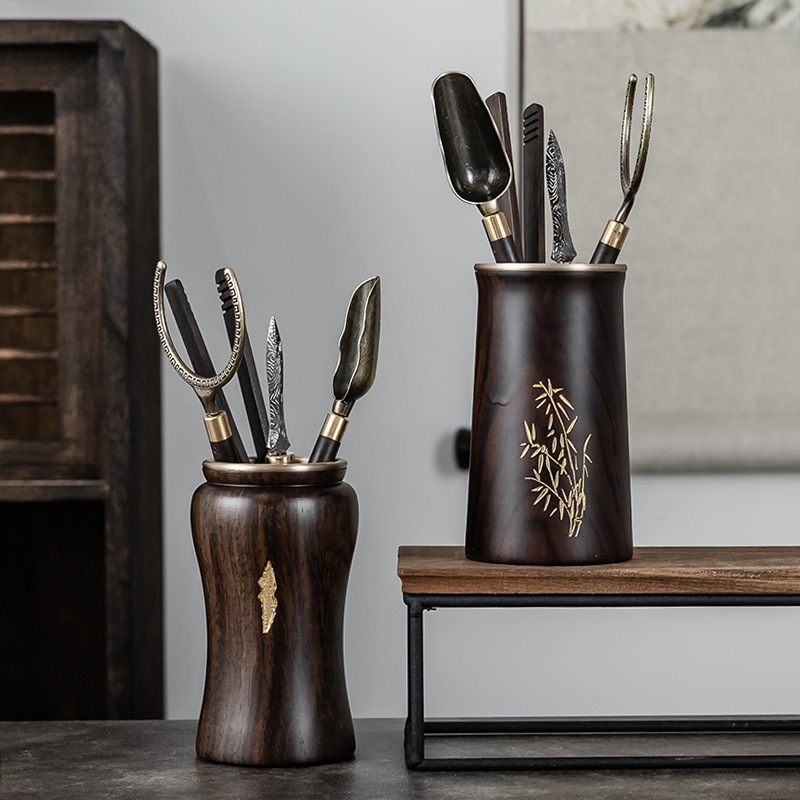 黒檀茶道六君子セット家庭用カンフー茶芸セット茶さじ茶さじ大サイズシンプル6君子部品