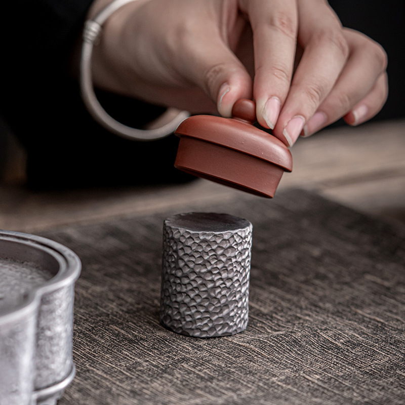 純粋な錫の蓋は茶筒の蓋を置きます。