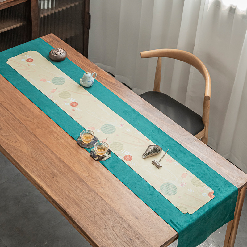 テーブル旗日本式防水茶席テーブルクロス鹿皮絨禅意茶旗綿麻布芸茶台茶盤マット茶器部品