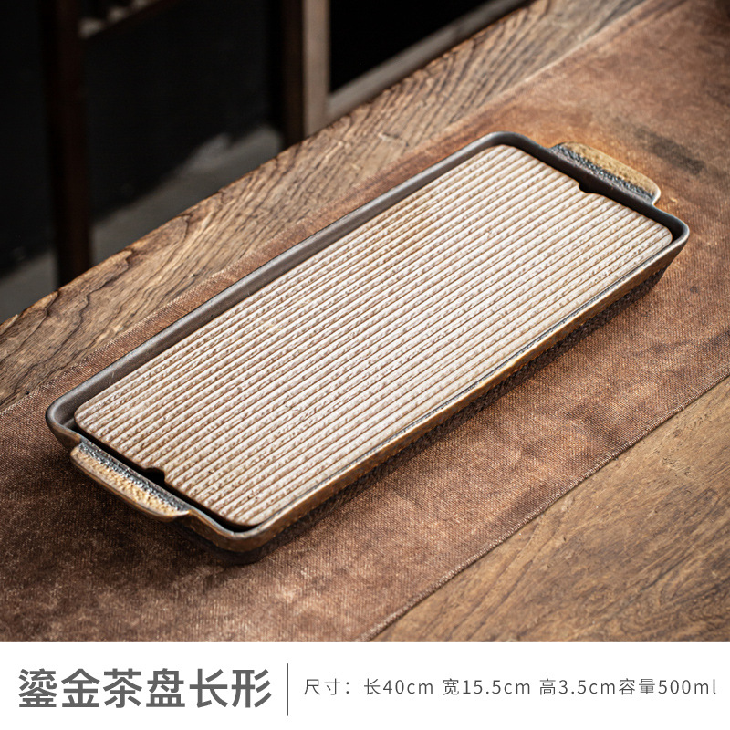 メーカー卸売り粗陶金釉薬乾泡台工夫茶器シンプル長方形貯水茶トレー茶道零配