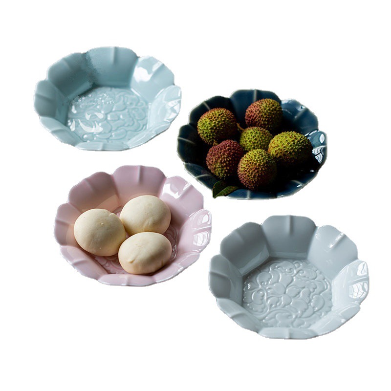 中国式壺承影清浮彫茶点皿陶磁器果皿トレー日本式茶道ナッツお菓子皿果物かご