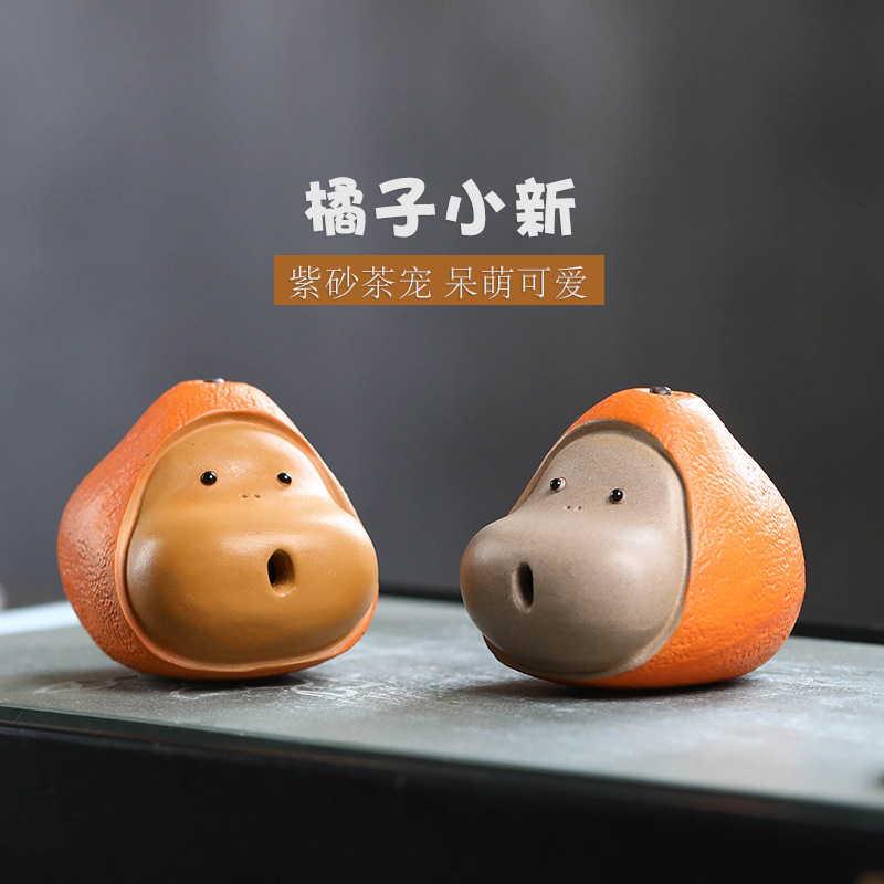 紫砂茶はカエルの小さな置物をかわいがります。手作りのアイデアです。