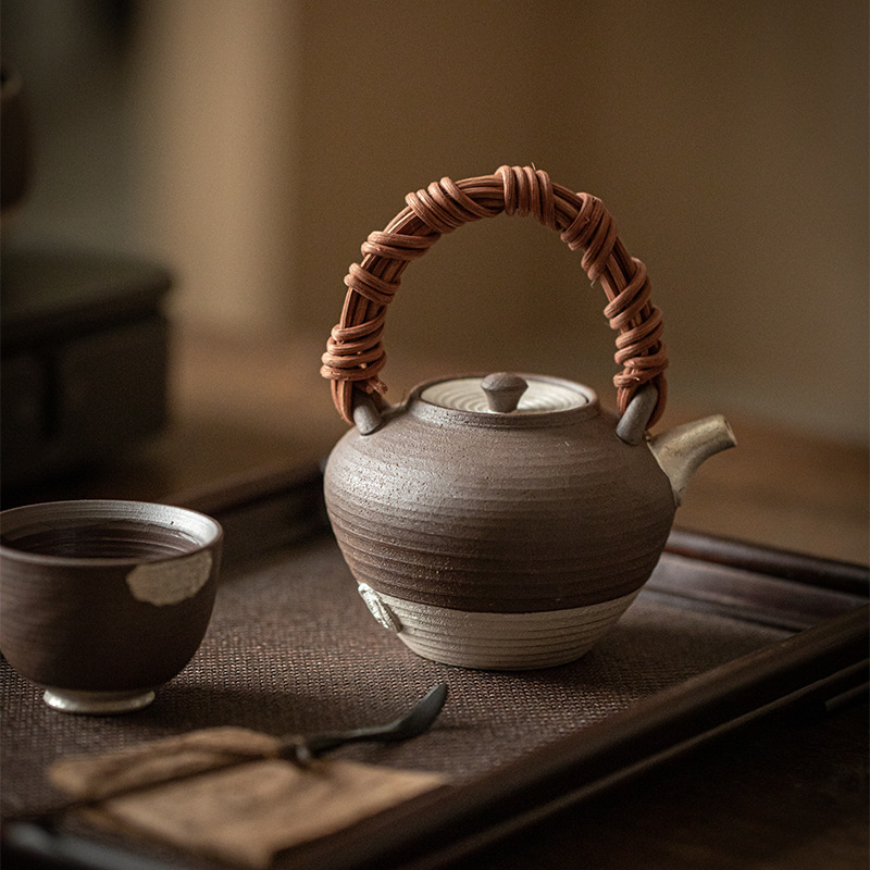古い岩泥を卸売りして日本式の手作りの藤編みの梁壺の大きいサイズの家庭用のティーポットの復古の粗い陶単壺の工夫茶を編みます。