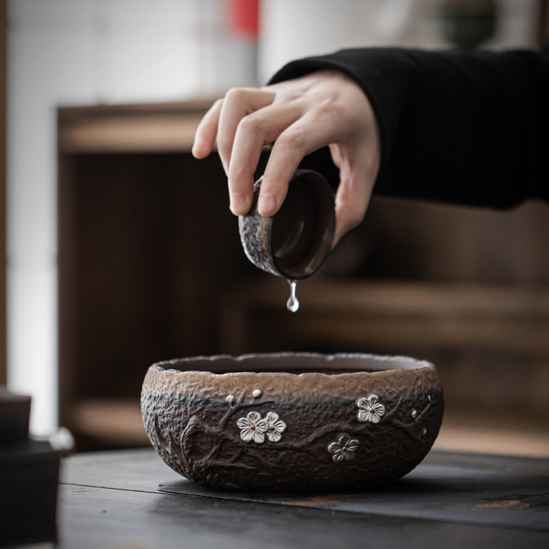 卸売りの粗い陶器の金の小さいサイズのお茶は家庭用のお茶の杯を洗ってお茶のかすのかめの禅の意の復古の茶器の部品を洗います。
