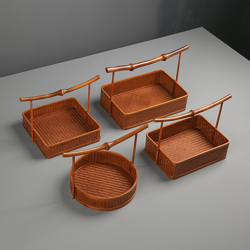 竹の竹の編みかごの大きい漆の復古の手提げの果物のかごの収納かごの日本式のお菓子の皿の茶器の収納箱はかごを整理します。